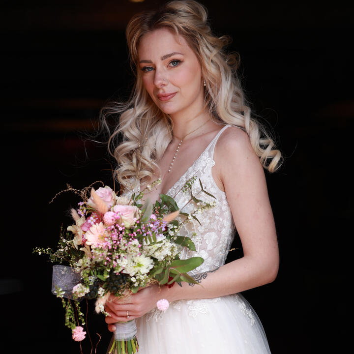 Dieser Abschnitt war eine Herausforderung. Ich habe keine bestimmte Philosophie oder irgendetwas, das ich zu 100 % vertrete. Viel zu vieles finde ich einfach genial, als dass ich mich festlegen will. Und genau das macht mich wiederum auch aus.Was ich super finde ist aus "alten" Sachen,etwas neues zu machen. Blumen und Gegenständen durch meine Ideen neues Leben einhauchen. Upcycling nennt sich das glaub ganz proffessionell. Mir machts einfach Spaß.Fakt ist, ich feiere Blumen – wegen ihrer Ausstrahlung, der Wirkung, die sie haben, den Farben und Formen die ich kombiniere, der Menge oder auch dem ganz dezenten Einsatz. Ich stehe auf natürliches Material, das unsere Natur zu bieten hat. Und da geht schon einiges. Aber auch auf Pink und Glitzer, ganz Weiß und schnörkellos. Ich liebe diesen kreativen Spielraum.Was ganz klar ersichtlich ist, ist meine Liebe zum Detail – und grundsätzlich meine Liebe zu diesem Beruf. Mir ist wichtig, dass ich die Deko so gestalte, dass sie sich in das große Ganze eurer Feier einfügt, alles etwas lebendiger und schöner macht, aber nicht dominiert. Alles zusammen soll ein schönes Bild ergeben. Wie das am Ende aussieht, kommt immer auf euch an.Ganz egal, was ich mache – ob Hochzeitsdeko, Türkranz, Weihnachtsdeko oder Blumenschmuck für andere feierliche Anlässe – wichtig ist mir, dass es euch am Ende Freude bereitet.